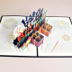 - The pop-up birthday card comes with an envelope. Opening this birthday card will display 3D paper graphics. There are many different graphics corresponding to different sizes to provide options. This is an impressive card.