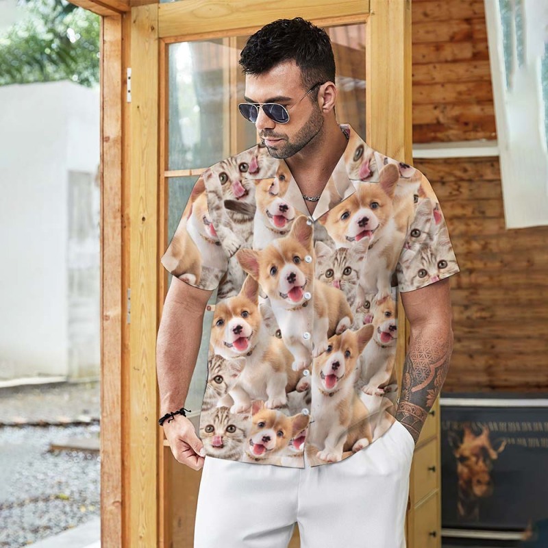 Custom Pet Face Hawaiian Shirt Men's All Over Print Aloha Shirt Two Faces Shirt Gift