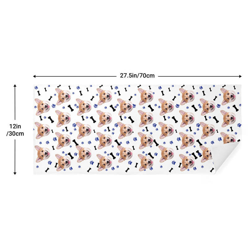 Custom Dog Faces Paw and Bone Beach Towel Personalized Photo Beach Towel Funny Gift