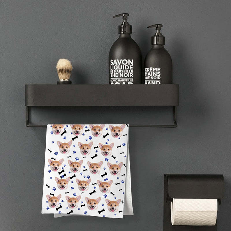 Home / Custom Dog Faces Paw and Bone Beach Towel Personalized Photo Beach Towel Funny Gift