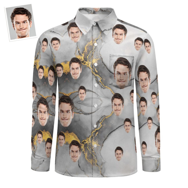 Custom Face All Over Print Large Long Sleeve Shirt Black Gold Abstract Fluid Art