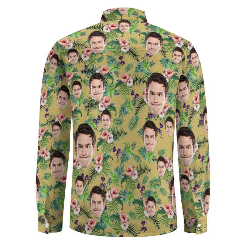 Custom Face All Over Print Long Sleeve Shirt Pink Flowers