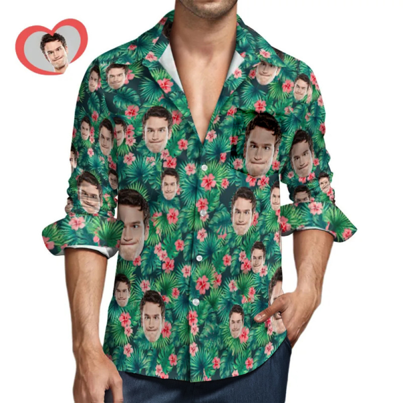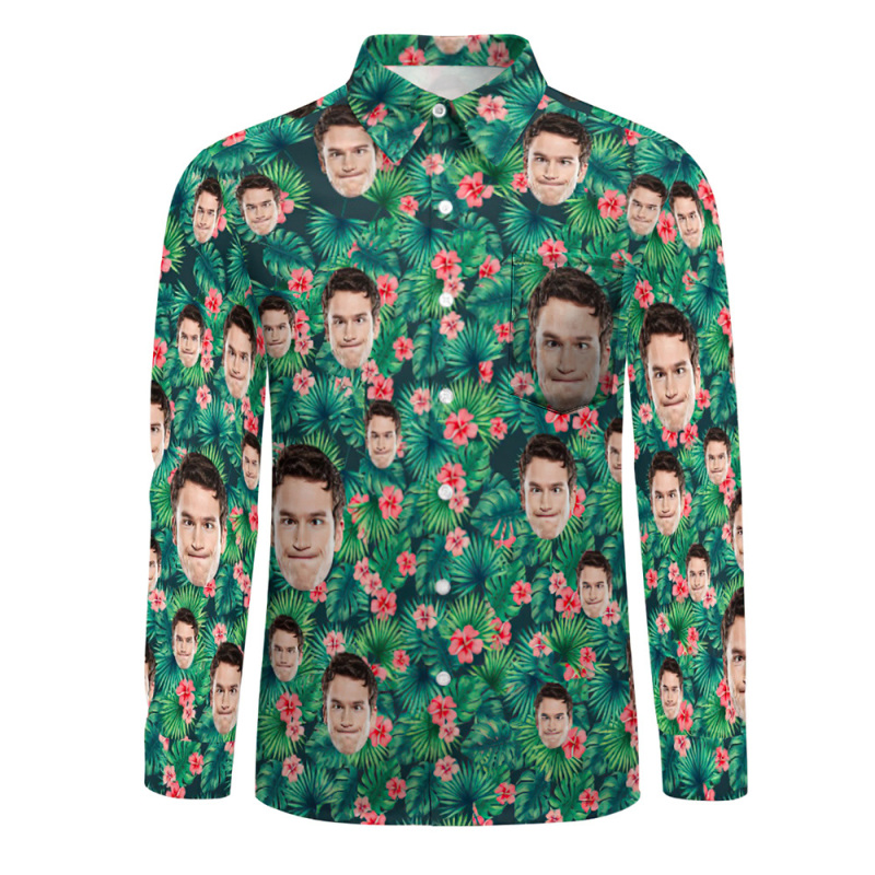 Custom Face All Over Print Long Sleeve Shirt Red Flowers Design