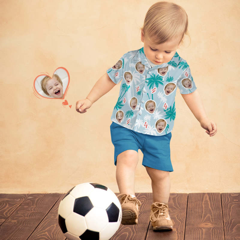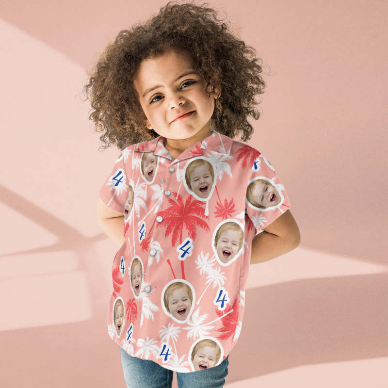 Custom Face And Number Kid's Birthday Hawaiian Shirts Red And White Coconut Tree Shirts Birthday Gift