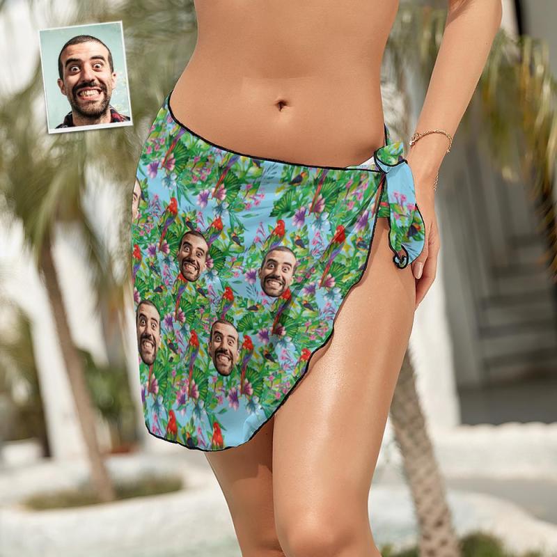 Custom Face Beach Wrap Women Short Sarongs - Parrot