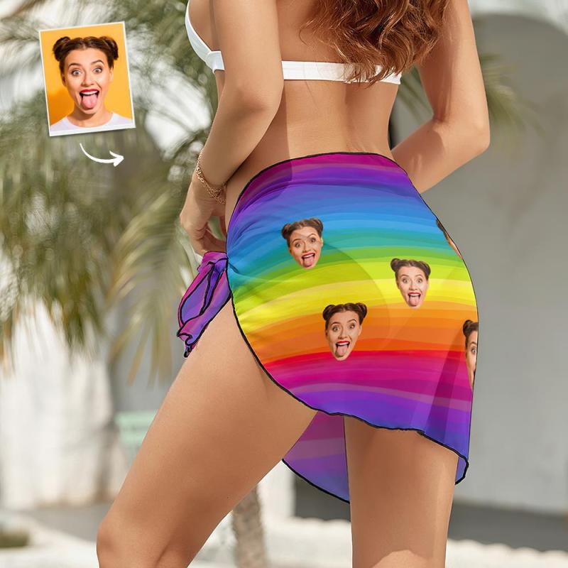 Custom Face Beach Wrap Women Short Sarongs - Rainbow