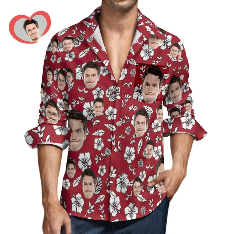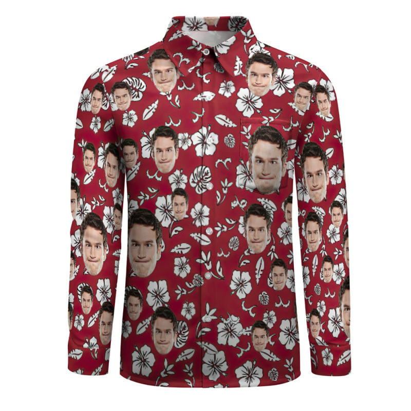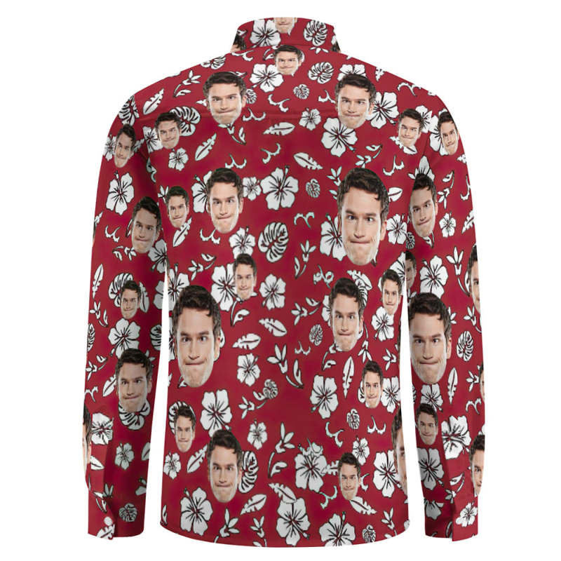 Home / Custom Face Flowers Design All Over Print Red Long Sleeve Shirt