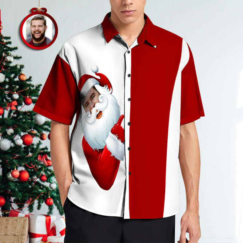 Custom Face Hawaiian Shirts Personalized Christmas Gift Men's Santa Hug Print Christmas Shirts