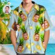 Custom Face Hawaiian Style Big Pineapple Long Dress And Shirt Family Matching