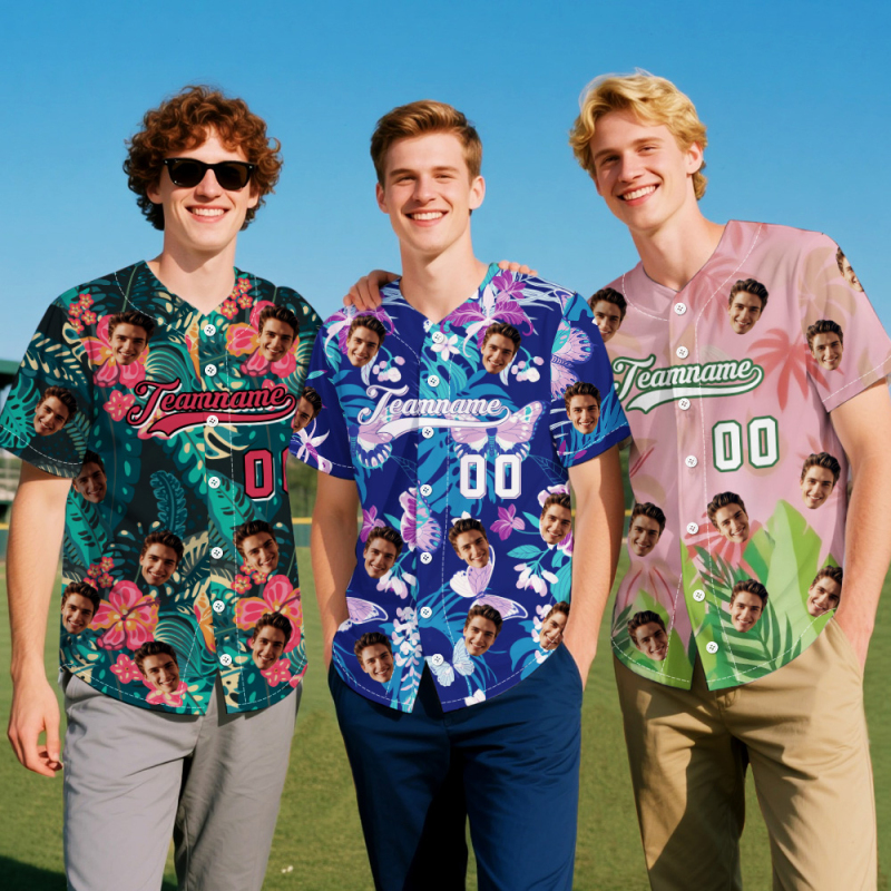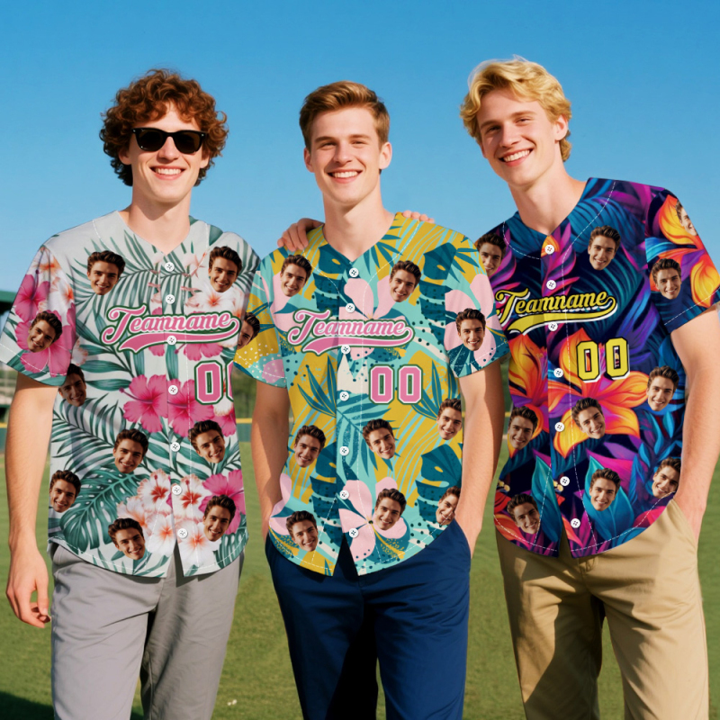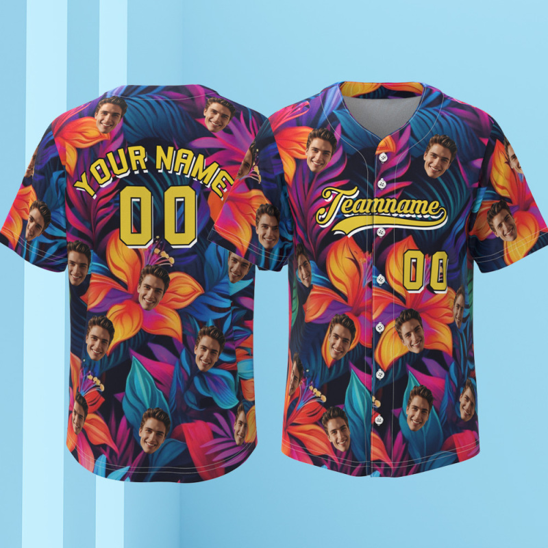 Print your face on a real Men's All Over Print Hawaiian Baseball Jersey Shirt. Cheer you up or show your love and support for your loved one with your awesome idea. The best custom gifts for your lover, family and friends, and for various holidays.