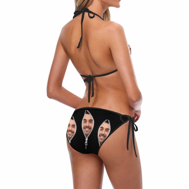 Custom Face Bikini Women's Sexy Photo Segmented Swimsuit - Zipper