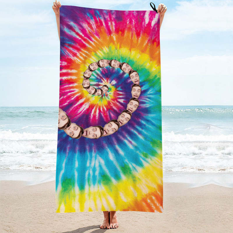 Custom Faces Rainbow Beach Towel Personalized Photo Beach Towel Funny Gift