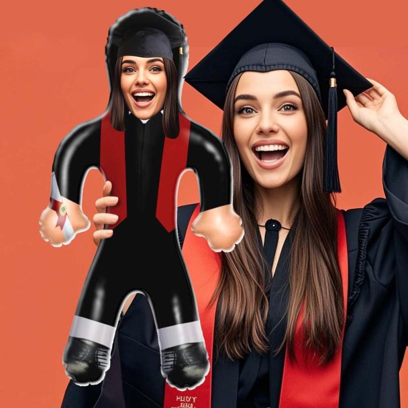 Custom Graduation Inflatable Doll – Red Stole with Face Photo