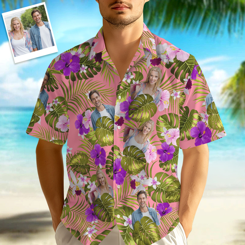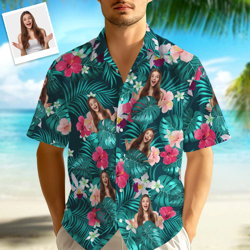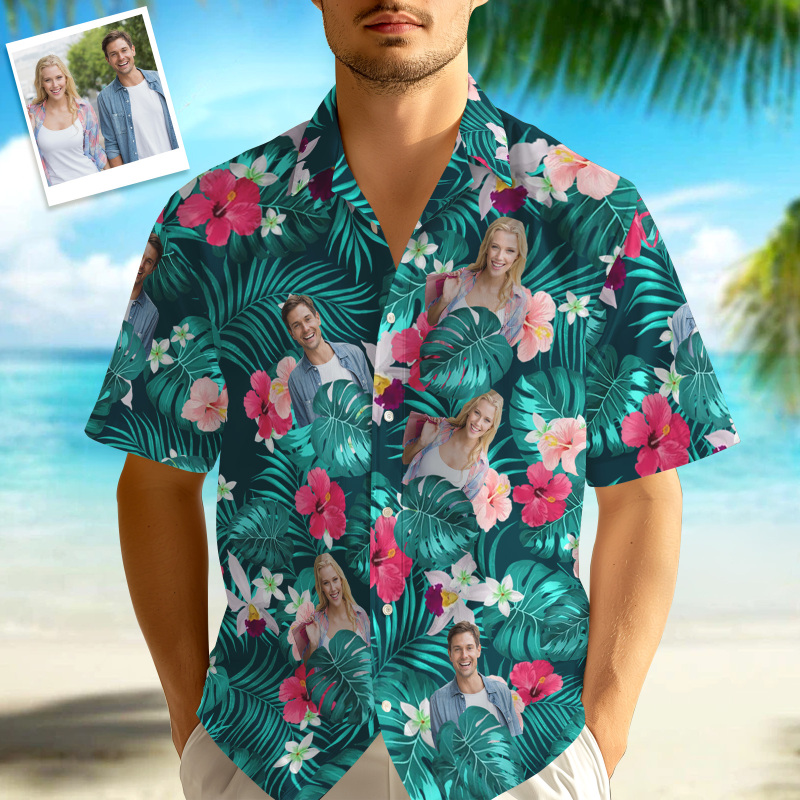 Custom Hawaii Shirt 1-3 Photos Optional Photo Tropical Style Bright Hawaiian Button-down Shirt
