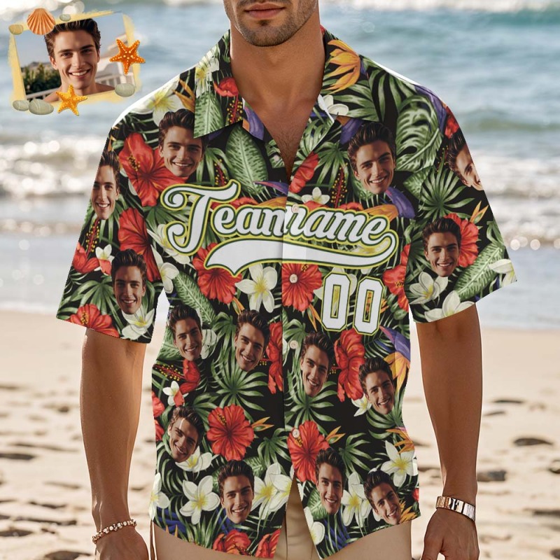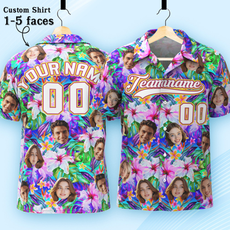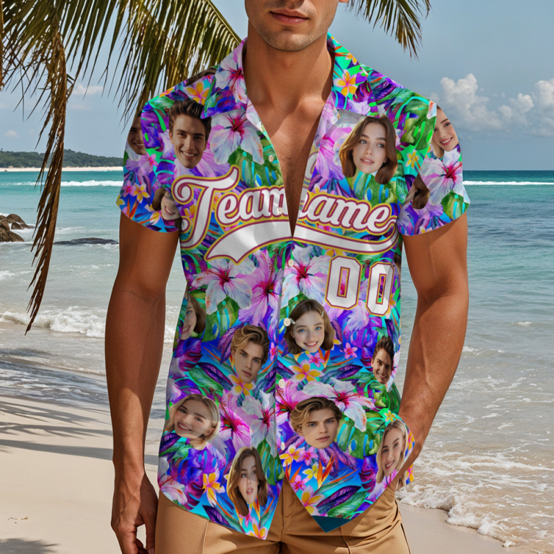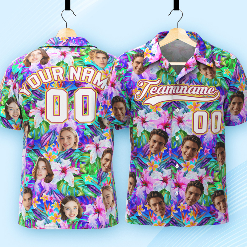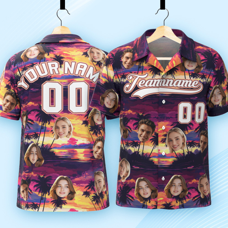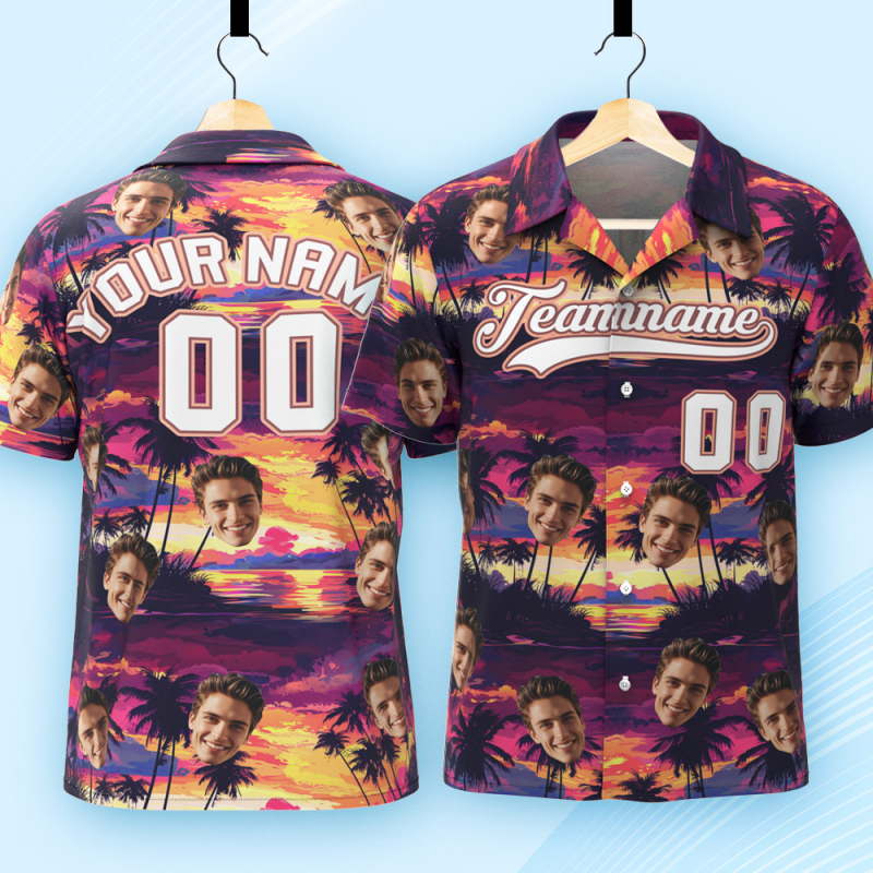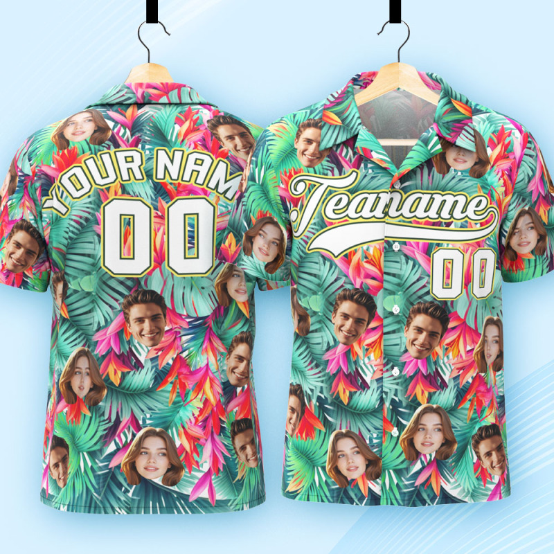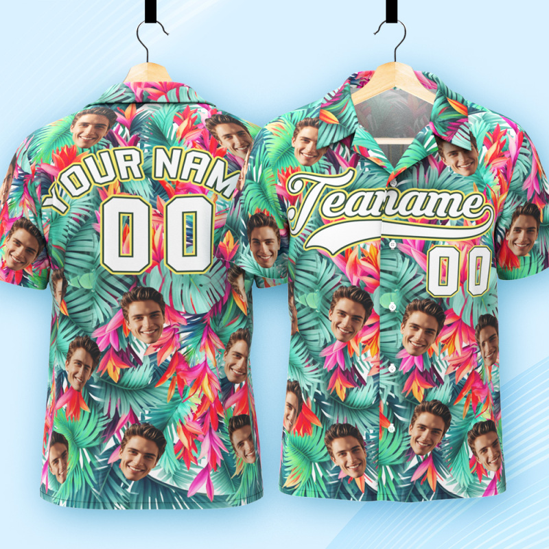 Print your face on a real Men's All Over Print Hawaiian Baseball Jersey Shirt. Cheer you up or show your love and support for your loved one with your awesome idea. The best custom gifts for your lover, family and friends, and for various holidays.