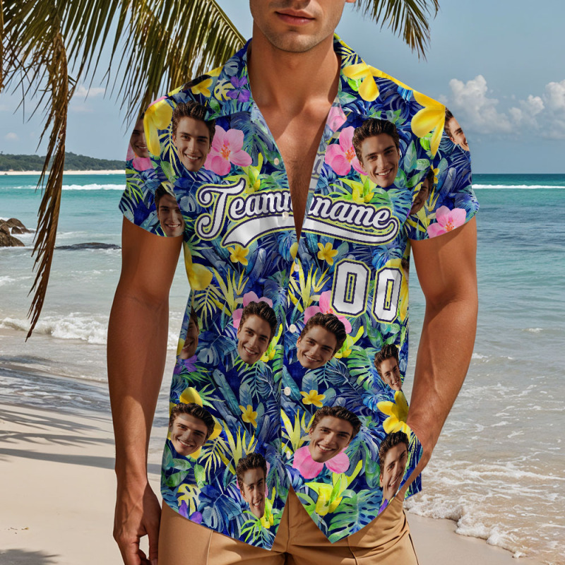 - Custom hawaiian shirts face all over print aloha beach shirt for men