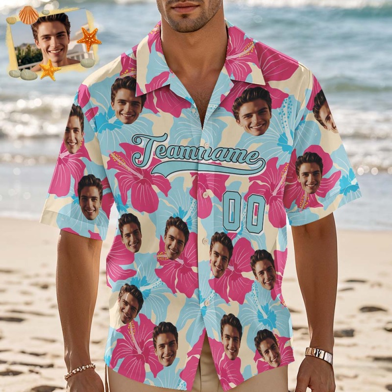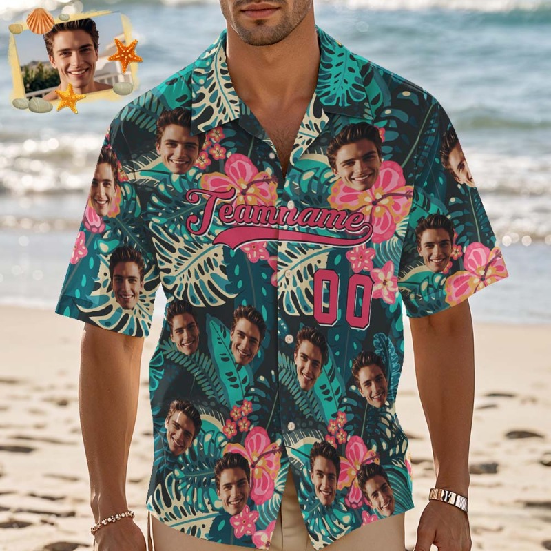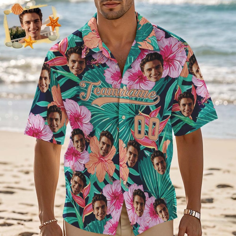 Home / Custom Hawaiian Shirt Personalized Team Name & Number Custom Face Tropical Summer Vacation Shirt for Men, Birthday, Beach, Party Gift