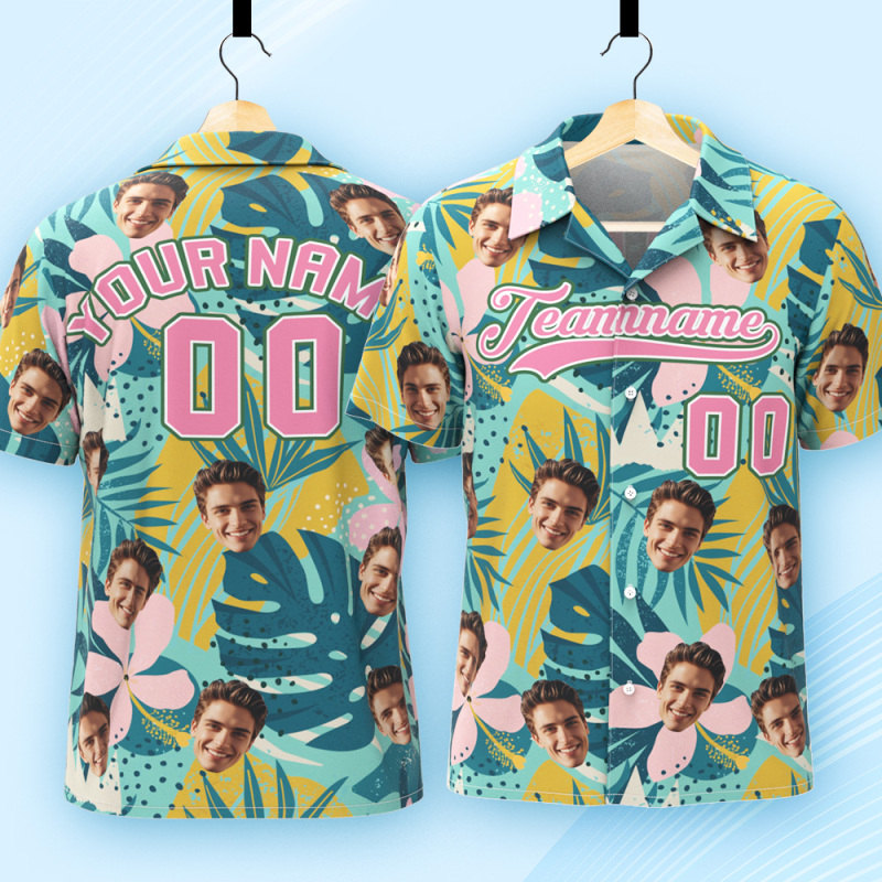 Custom Hawaiian Shirt Personalized Team Name & Number Custom Face Tropical Summer Vacation Shirt for Men, Birthday, Beach, Party Gift