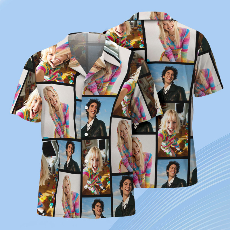 Turn heads and spark conversations with our Custom AI Cartoon-Style Hawaiian Shirt – personalized with your favorite faces and memories! Upload multiple photos, and we’ll transform them into a bold, fun, collage-style button shirt with a vibrant cartoon effect.