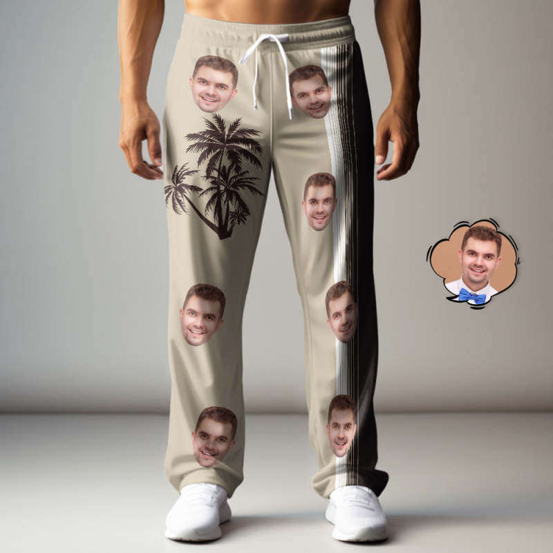Custom Men's Face Sweatpants Gradient Striped Personalised Casual Pants for Him