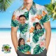 Home / Custom Multi Photo Face And Text Hawaiian Shirt With Palm Leaves And Colorful Flowers