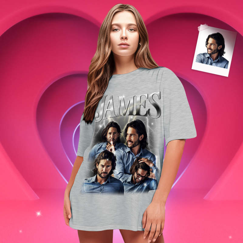 Custom Photo Vintage Tee Personalized Name T-shirt Personalised Gifts for Family Couple Shirt