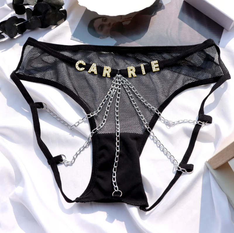 Elevate your lingerie game with our custom sexy thongs! Personalized with a dazzling crystal letter name, these thongs are a luxurious and unique addition to your underwear collection. Indulge in the perfect combination of comfort and style with our custom thongs. Perfect as a gift for that special someone.
