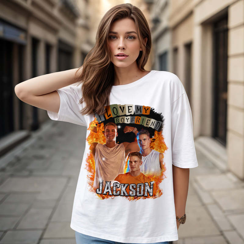 Custom Vintage Tee I Love My Girlfriend Shirt Personalized Name Shirt With Photo