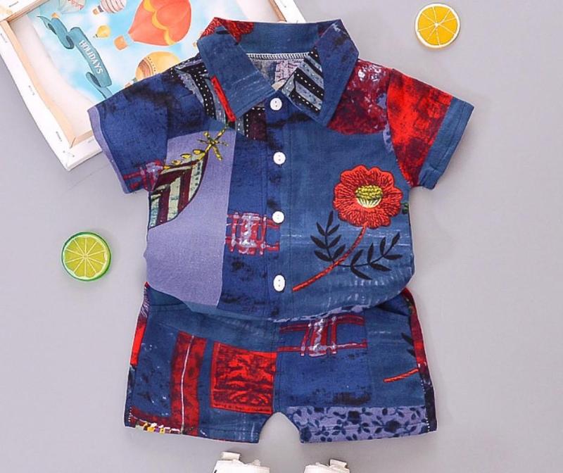 • Perfect casual wear after tumbling in the gentle waves is this 2 piece boys cotton cabana set including Aloha shirt and pants.