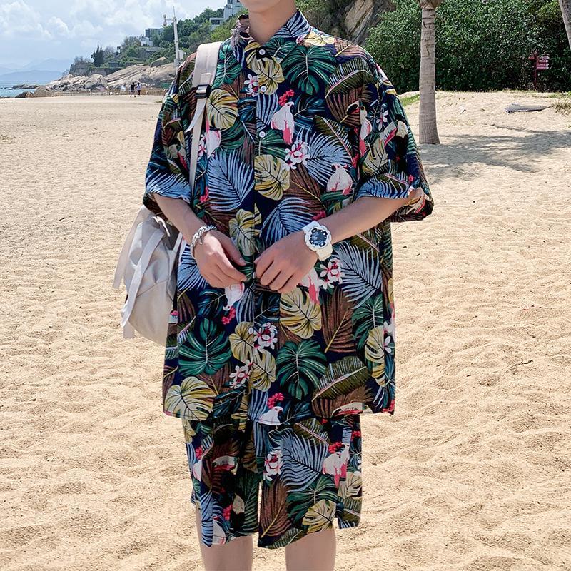 Home / Hawaiian Shirts Print Leaves and Birds On Black Background Aloha Beach Shirts For Men