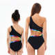 Home / One Piece Bikini Slanted Shoulder Rainbow Edge Parent-Child Swimsuit