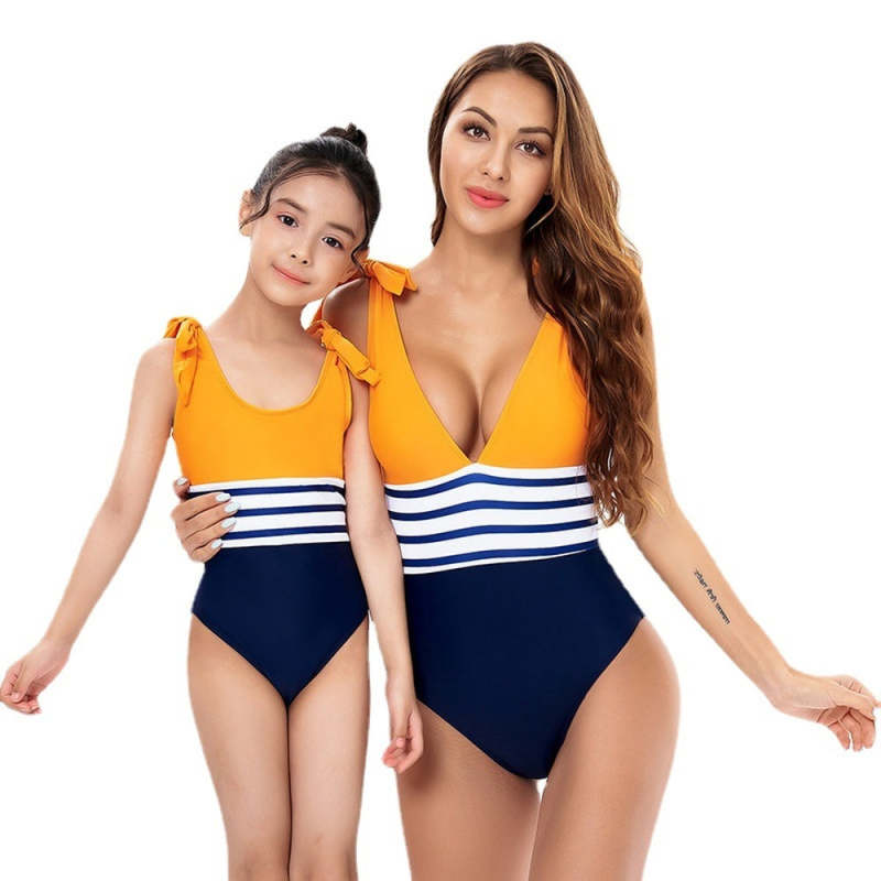 Home / Parent-Child Swimsuit One-Piece Striped Lace-up Bikini