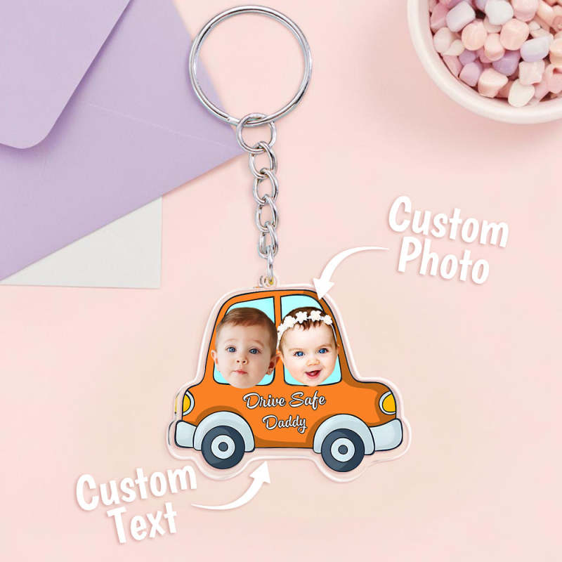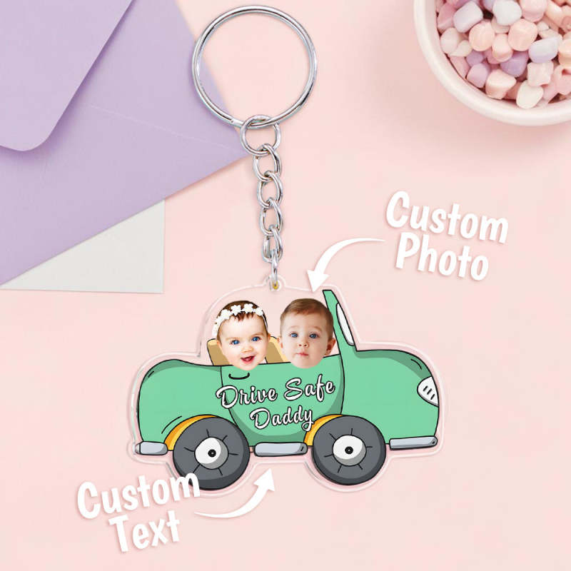 Home / Personalized Face Acrylic Keychain Drive Safe Daddy Father's Day Gifts
