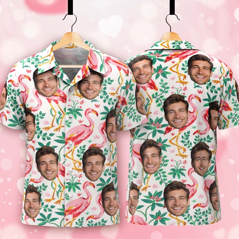 Personalized Face Hawaiian Shirt Funny Flamingo Print Tropical Button Up for Men