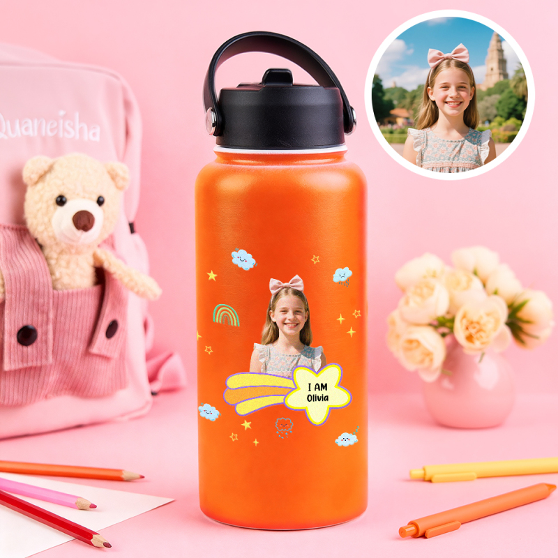 Home / Personalized Kids Water Bottle with Custom Portrait Personalized Name & Photo | Colorful & Fun Gift