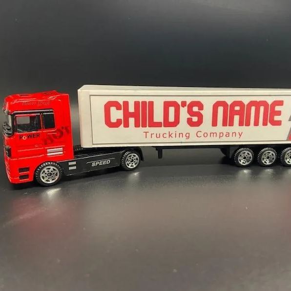 Personalized toy trucks can be customized with your name on the side of the truck: a great gift for birthdays, Christmas or any holiday! You can choose the color and upload a photo or logo.
