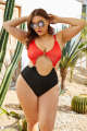 Plus Size One Piece Swimsuit Suspender Cutout Super Sexy Bikini