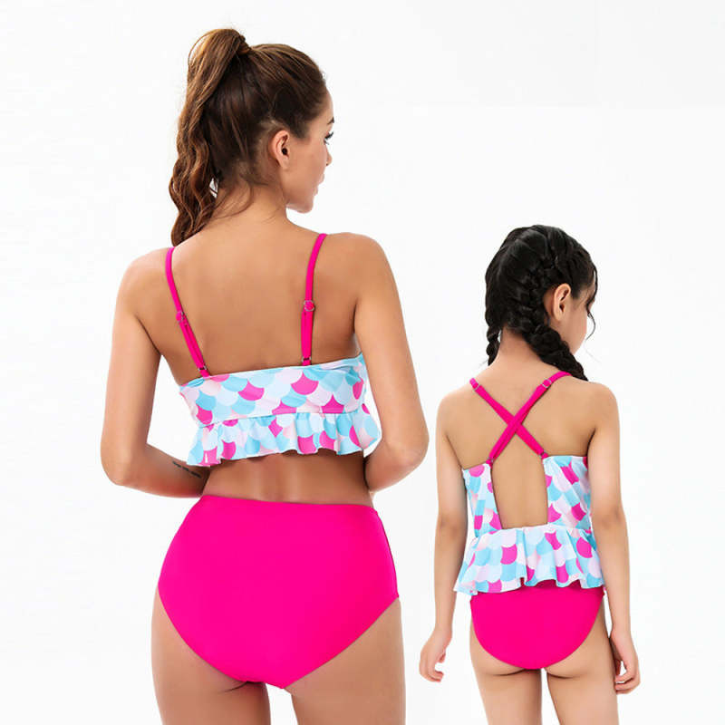 Sling Fish Scale Print Split High Waist Parent-Child Swimsuit
